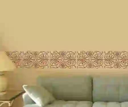 ابعاد ارائه شده مربوط به اجرای تمام شده طرح شابلون روی دیوار میباشد. ابعاد طلق شابلون به دلیل وجود حاشیه کمی بزرگتر از این ابعاد است.