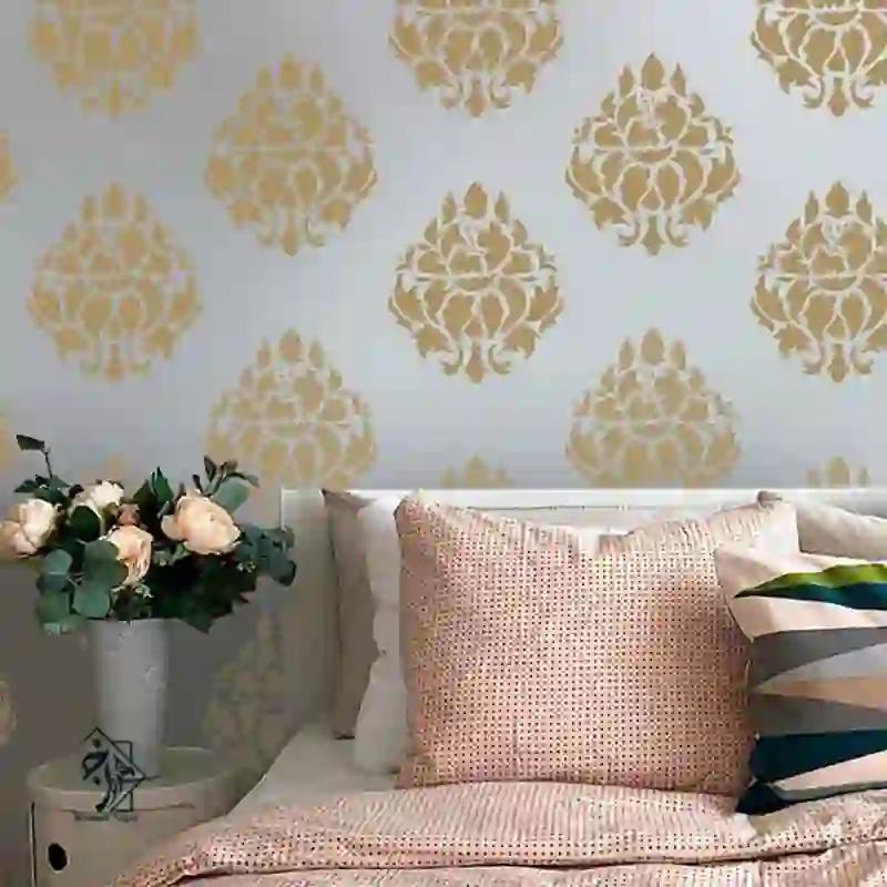ابعاد ارائه شده مربوط به اجرای تمام شده طرح شابلون روی دیوار میباشد. ابعاد طلق شابلون به دلیل وجود حاشیه کمی بزرگتر از این ابعاد است.
