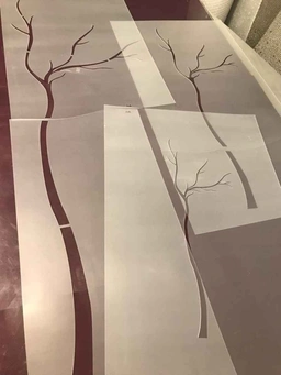 ابعاد ارائه شده مربوط به اجرای تمام شده طرح شابلون روی دیوار میباشد. ابعاد طلق شابلون به دلیل وجود حاشیه کمی بزرگتر از این ابعاد است.