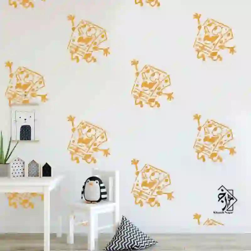 ابعاد ارائه شده مربوط به اجرای تمام شده طرح شابلون روی دیوار میباشد. ابعاد طلق شابلون به دلیل وجود حاشیه کمی بزرگتر از این ابعاد است.